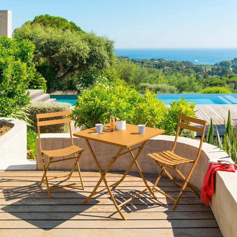 Chaise extérieure en métal Greensboro en coloris ocre de la marque Hespéride.