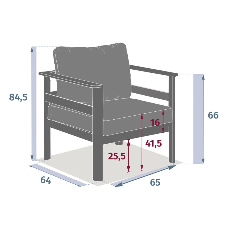 – un fauteuil 1 place (L. 80 x P. 75 x H. 66 cm)