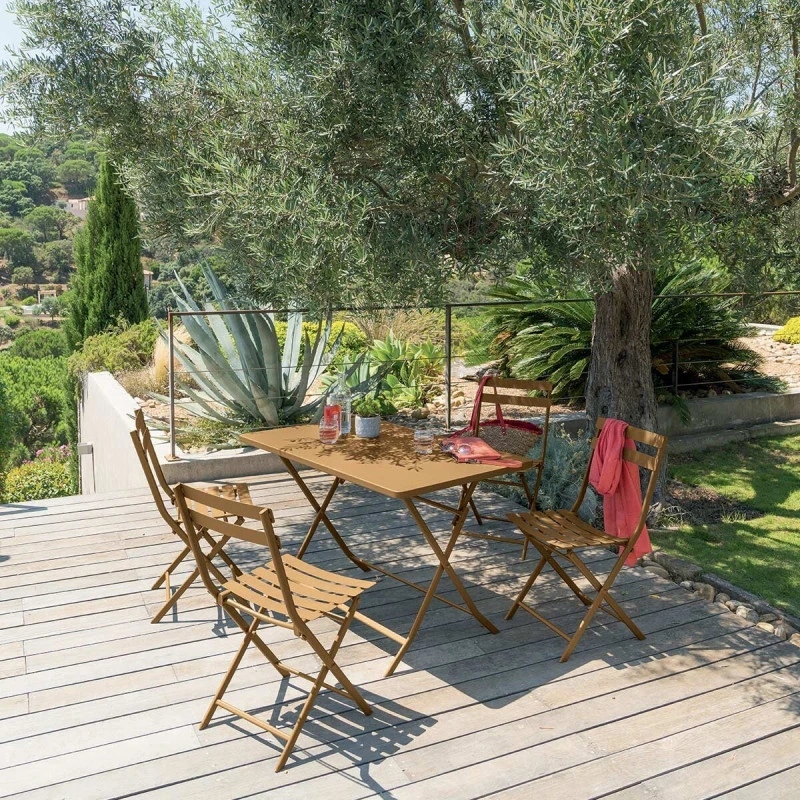 Pour de bons repas en plein air, optez pour la table rectangulaire extérieure pliante coloris ocre de la marque Hespéride.